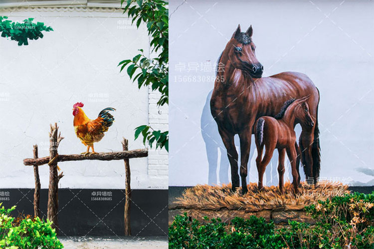 乡村生活3D墙绘一